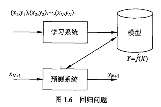 - 输入变量与输出变量均为连续变量的预测问题称为回归问题,输出变量为有限个离散变量的预测问题称为分类问题,输入变量与输出变量均为变量序列的预测问题称为标注问题